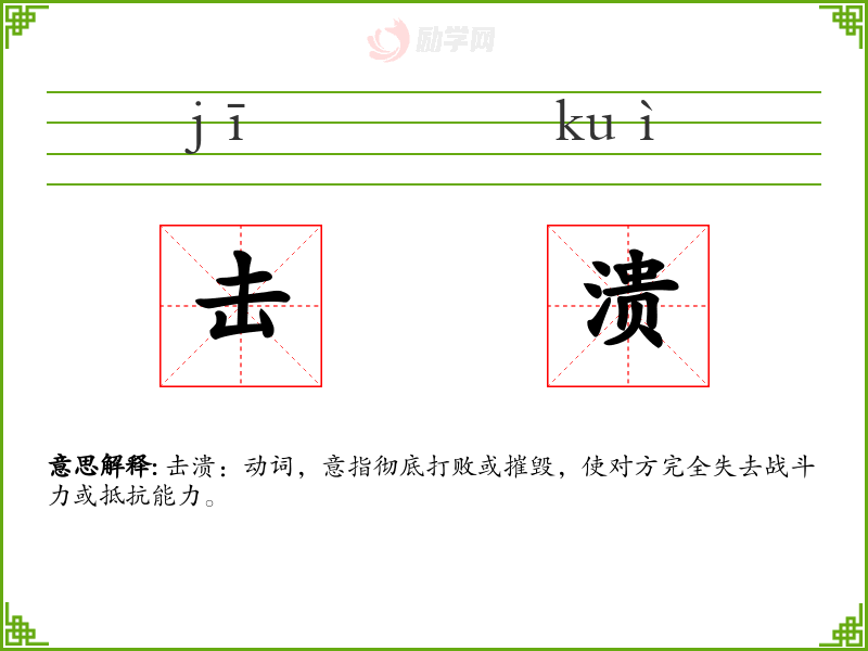 击溃:动词,意指彻底打败或摧毁,使对方完全失去战斗力或抵抗能力。