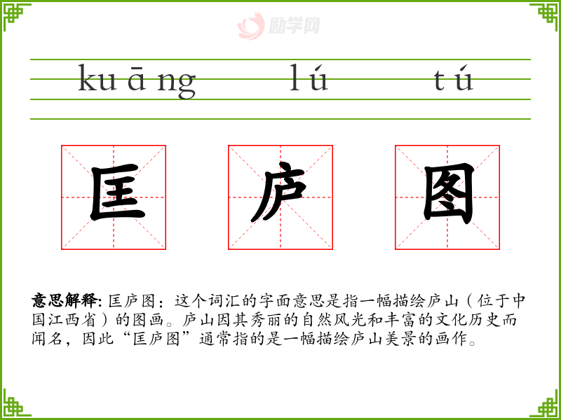 1.匡庐图的拼音是什么?匡庐图怎么读?
