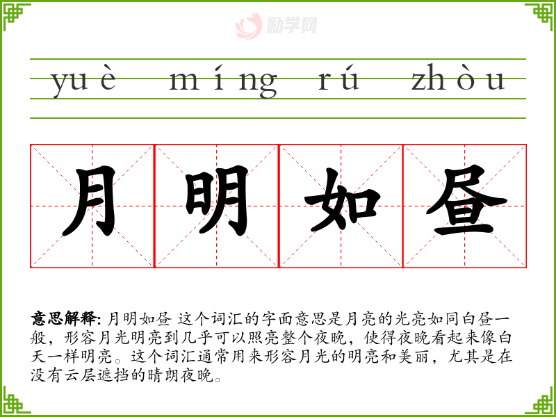 1.月明如昼的拼音是什么?月明如昼怎么读?