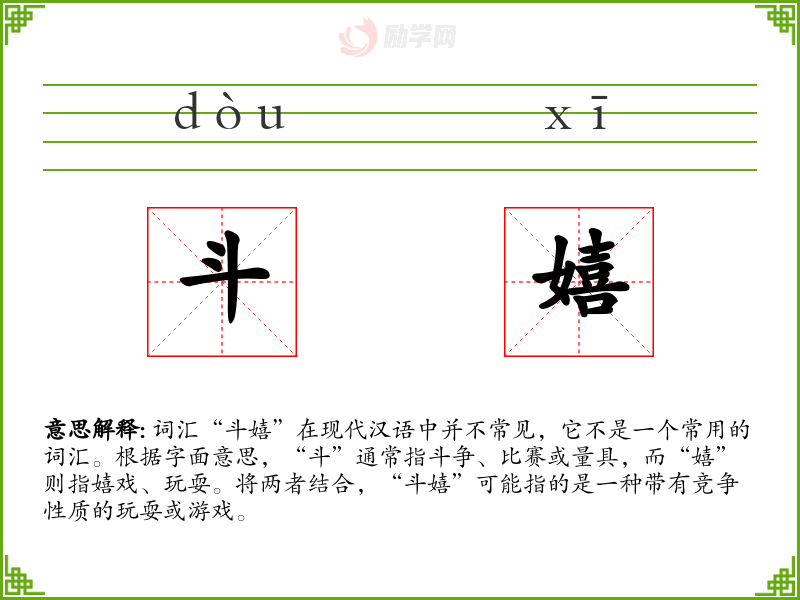 1.斗嬉的拼音是什么?斗嬉怎么读?