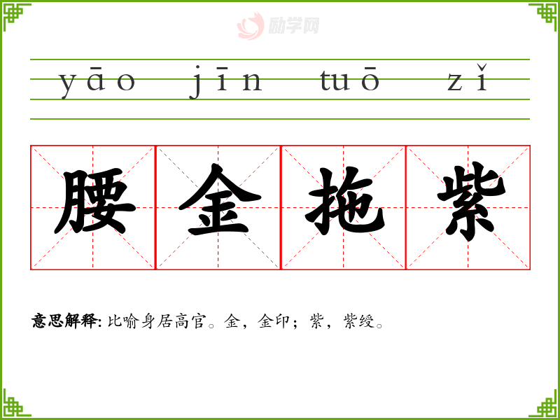 1.腰金拖紫的拼音是什么?腰金拖紫怎么读?