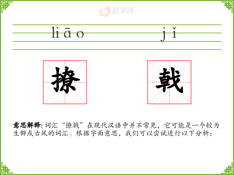 (由于“撩戟”是一个生僻词汇,个人应用可能较少)