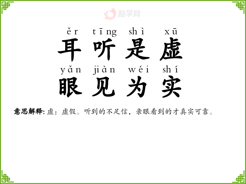 1.耳听是虚,眼见为实的拼音是什么?耳听是虚,眼见为实怎么读?