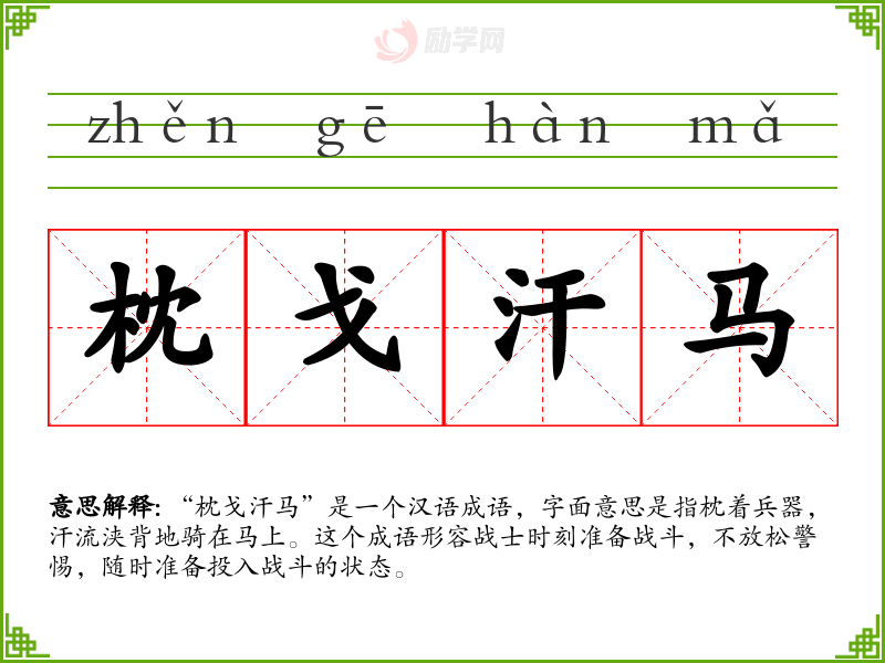 1.枕戈汗马的拼音是什么?枕戈汗马怎么读?