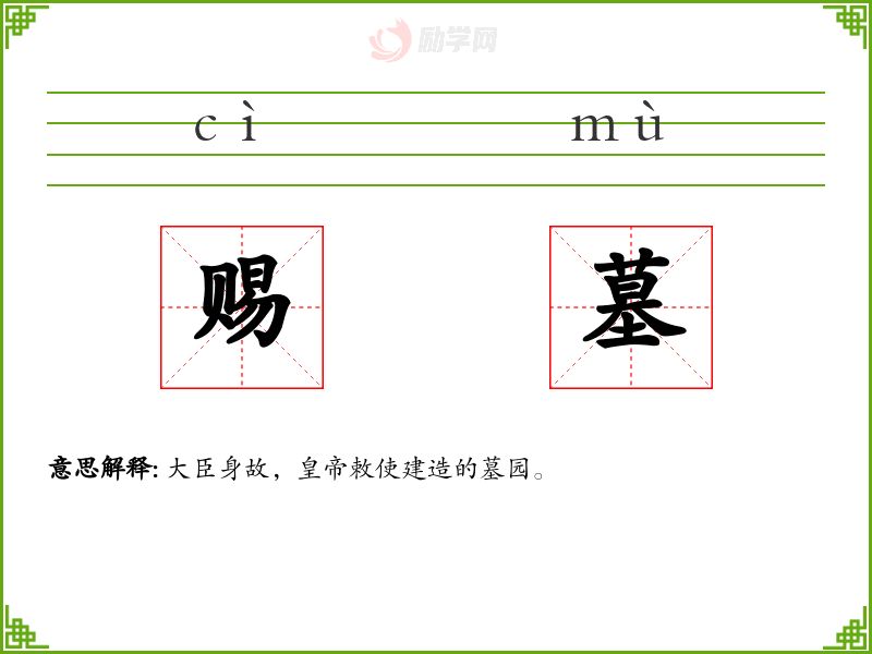 赐墓的意思是:大臣身故,皇帝敕使建造的墓园。