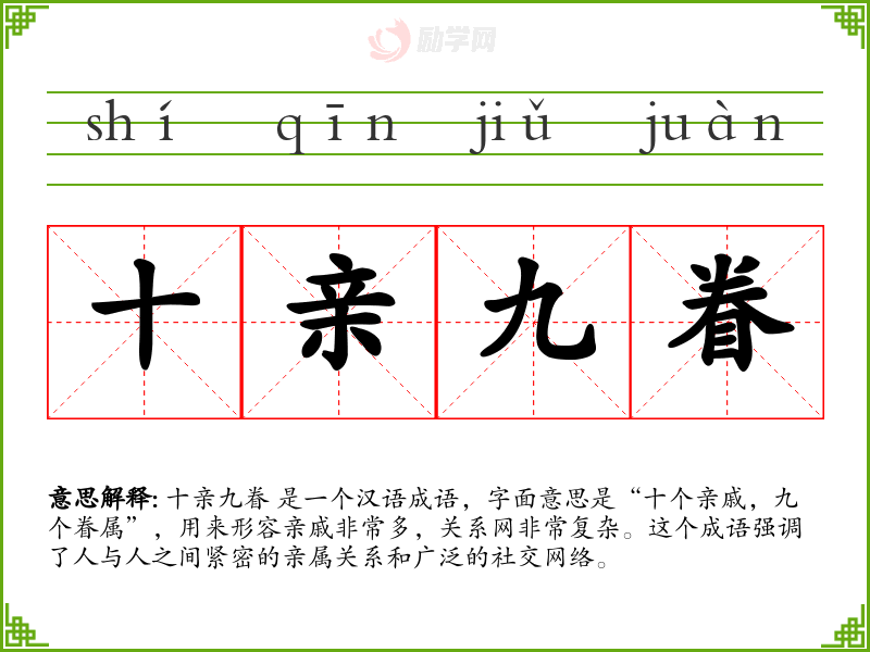 1.十亲九眷的拼音是什么?十亲九眷怎么读?
