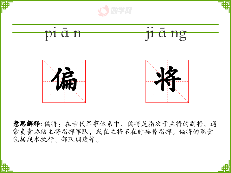 1.偏将的拼音是什么?偏将怎么读?