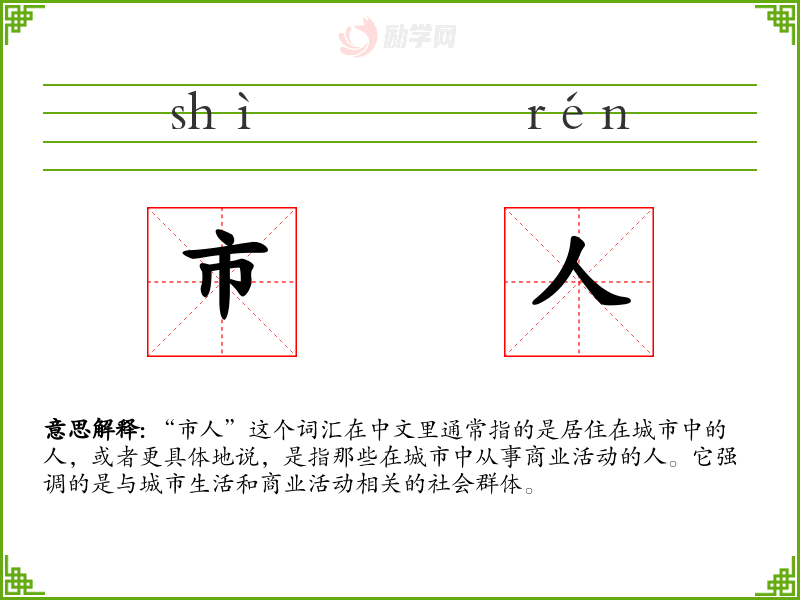 “市人”这个词汇在中文里通常指的是居住在城市中的人,或者更具体地说,是指那些在城市中从事商业活动的人。它强调的是与城市生活和商业活动相关的社会群体。