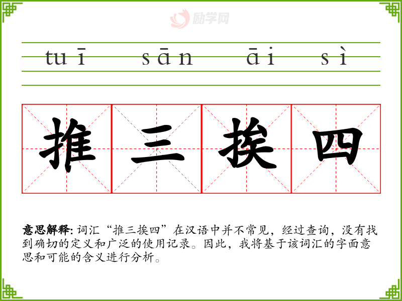 1.推三挨四的拼音是什么?推三挨四怎么读?