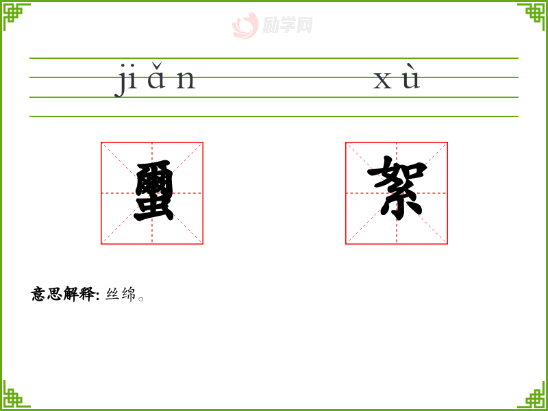 蠒[ jiǎn ] 1. “蚕食桑老,绩而为~。”。 [更多解释]