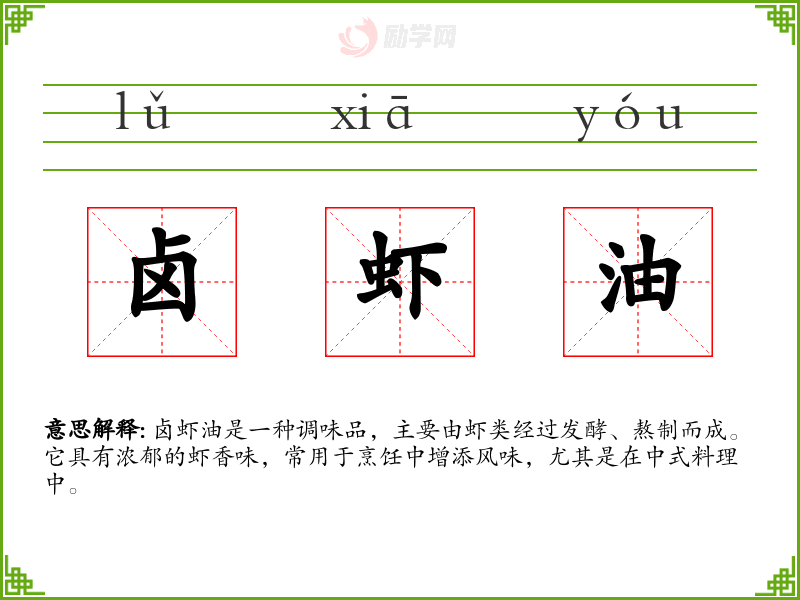 1.卤虾油的拼音是什么?卤虾油怎么读?