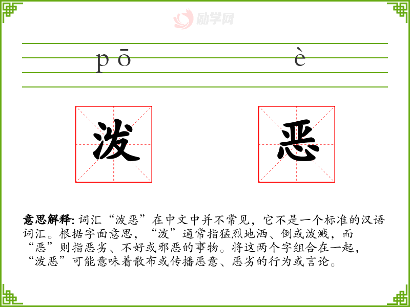 在特定的文化或社会背景下,“泼恶”可能被用来描述那些故意散布谣言或恶意信息的行为,这在网络时代尤为常见。