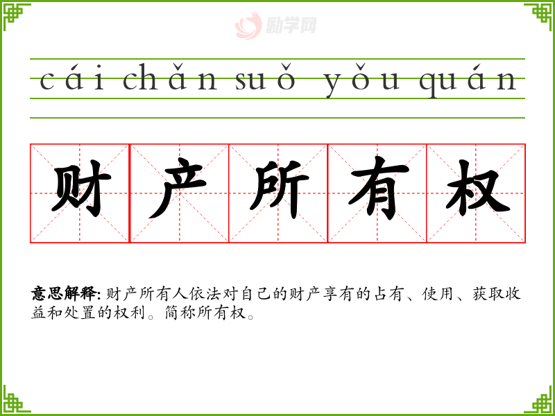1.财产所有权的拼音是什么?财产所有权怎么读?