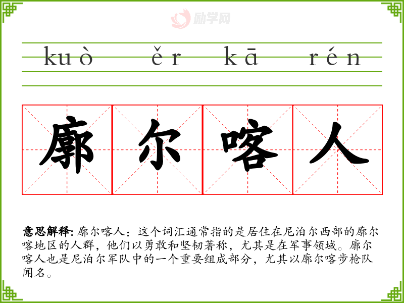 1.廓尔喀人的拼音是什么?廓尔喀人怎么读?