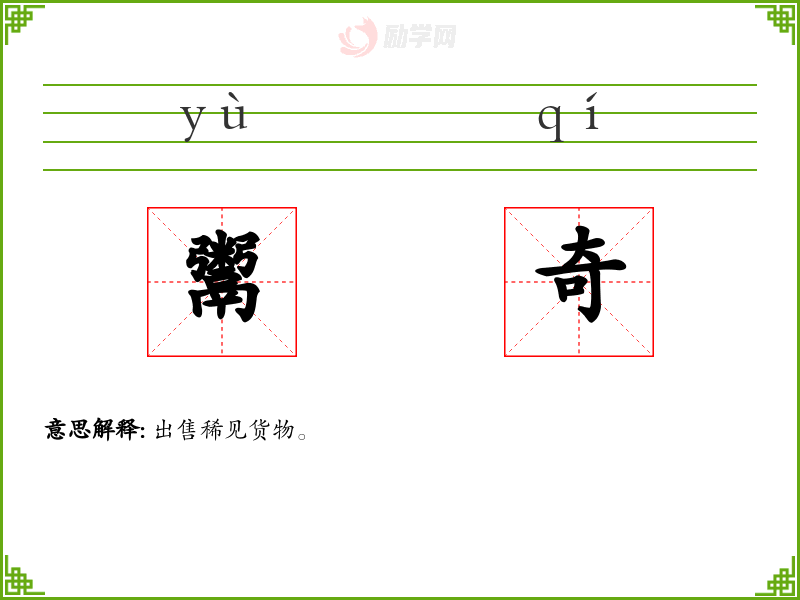 鬻奇的意思是:出售稀见货物。