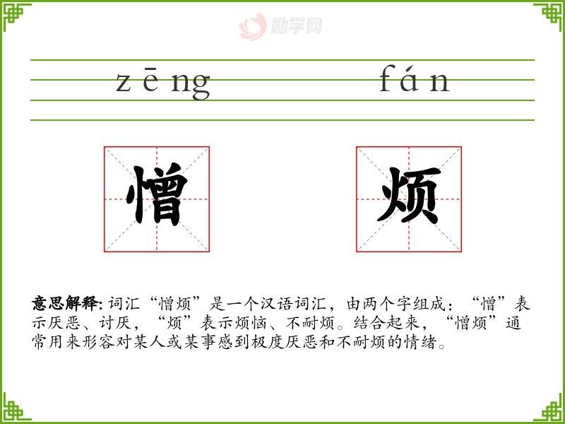 1.憎烦的拼音是什么?憎烦怎么读?