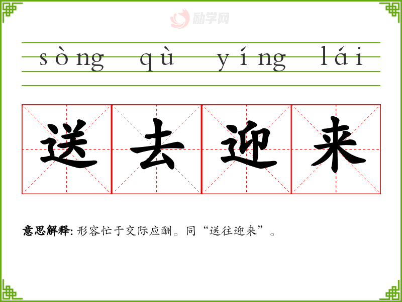 《说文》。-送,遣也。 《荀子·富国》。注:“致女也。”-送迎无礼。