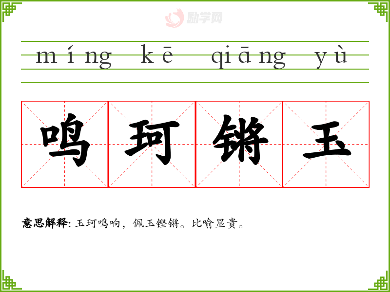 1.鸣珂锵玉的拼音是什么?鸣珂锵玉怎么读?