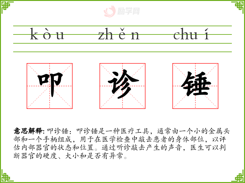 1.叩诊锤的拼音是什么?叩诊锤怎么读?