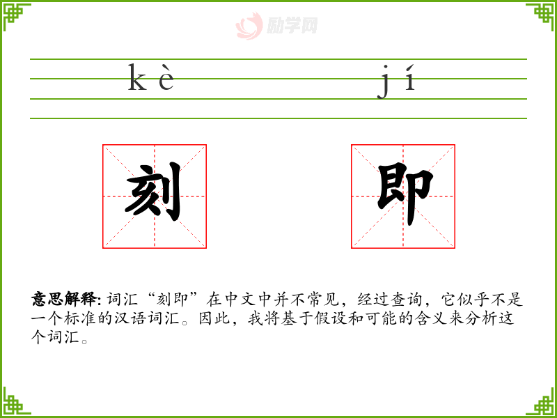 词汇“刻即”在中文中并不常见,经过查询,它似乎不是一个标准的汉语词汇。因此,我将基于假设和可能的含义来分析这个词汇。