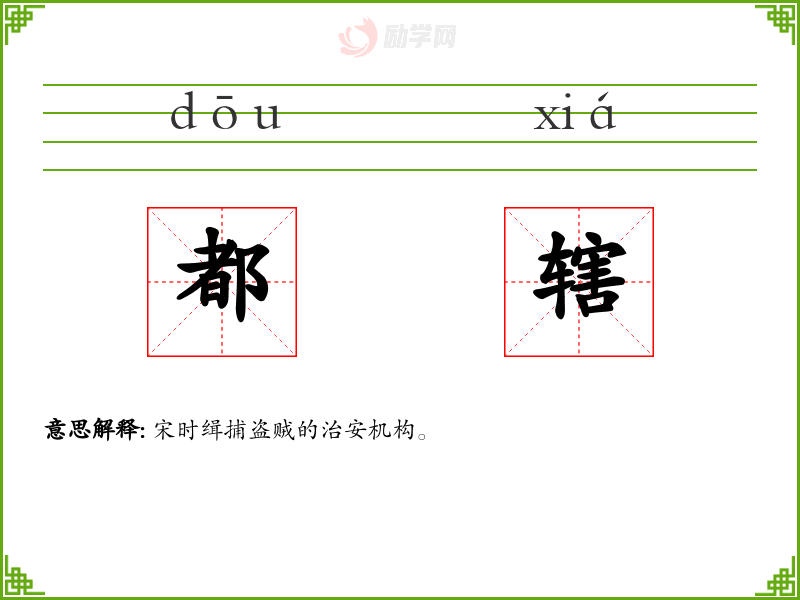 都辖的意思是:宋时缉捕盗贼的治安机构。