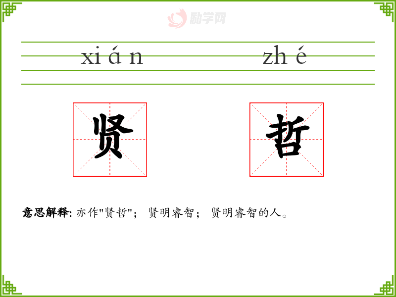 《说文》-贤,多才也。 《庄子·徐无鬼》-以财分人之谓贤。 《史记》-相如既归,赵王以为贤大夫。 诸葛亮《出师表》-闲贤臣。