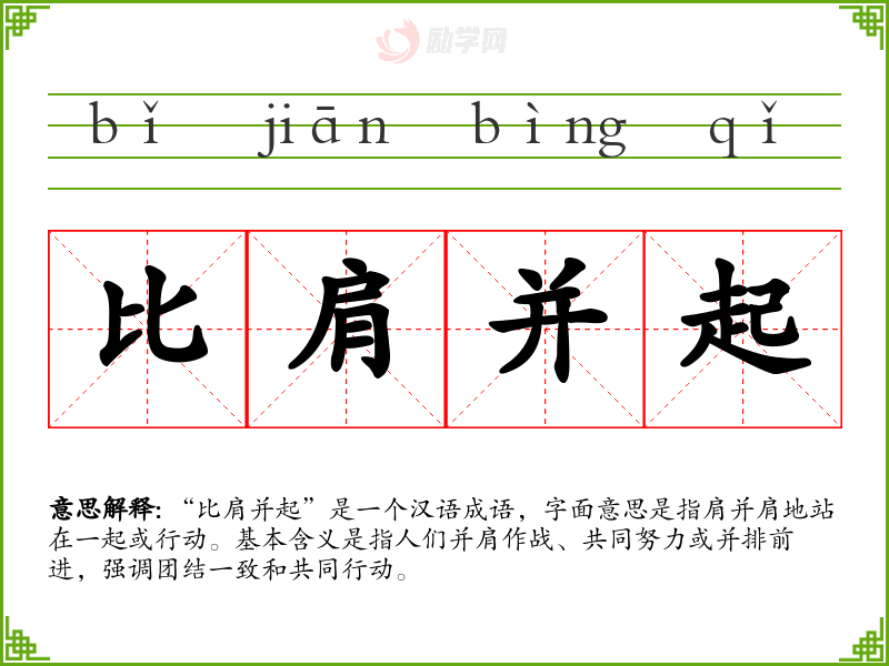 1.比肩并起的拼音是什么?比肩并起怎么读?