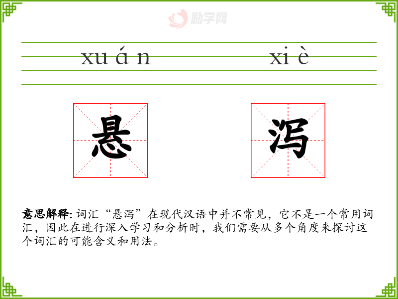 词汇“悬泻”在现代汉语中并不常见,它不是一个常用词汇,因此在进行深入学习和分析时,我们需要从多个角度来探讨这个词汇的可能含义和用法。