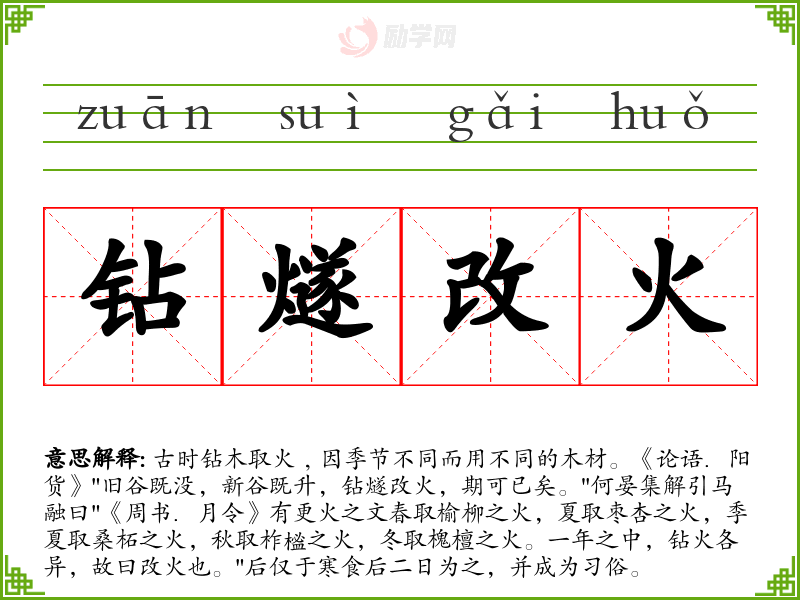1.钻燧改火的拼音是什么?钻燧改火怎么读?