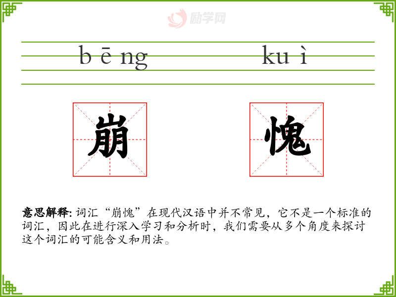 词汇“崩愧”在现代汉语中并不常见,它不是一个标准的词汇,因此在进行深入学习和分析时,我们需要从多个角度来探讨这个词汇的可能含义和用法。