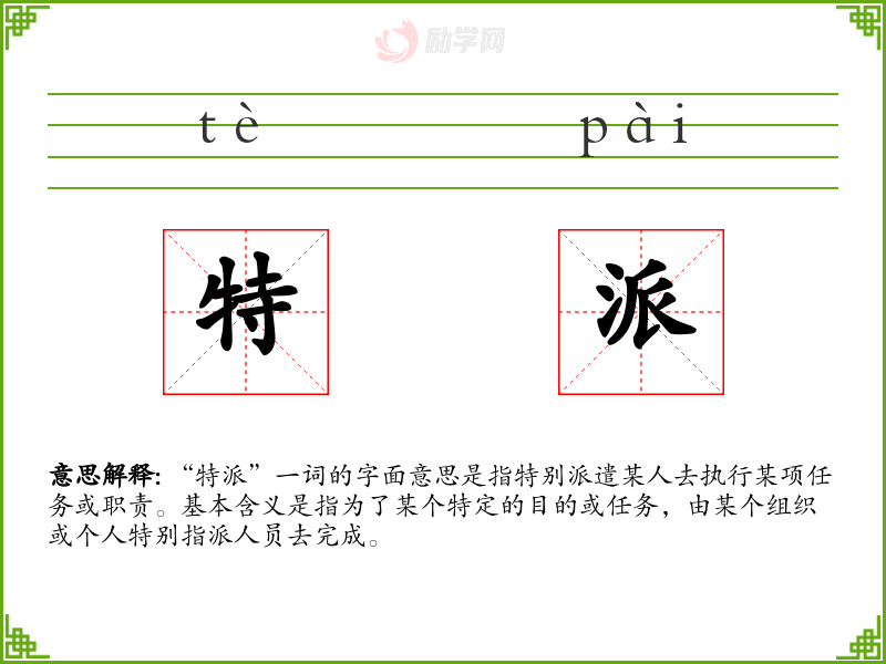 “特派”一词源自汉语,由“特”和“派”两个字组成。在古代汉语中,“特”有特别、特殊的含义,“派”则有派遣、指派的意思。随着时间的推移,“特派”逐渐固定为表示特别派遣的词汇。