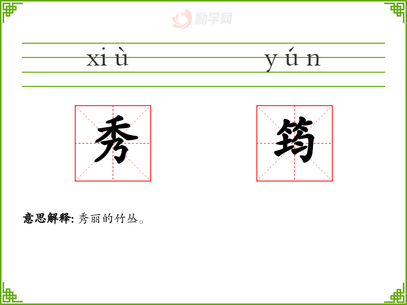《广韵》-筠,竹皮之美质也。 王嘉《拾遗记》-手握青筠之杖。 《礼记》。郑玄注:“筠,竹之青皮也。”-其在人也,如竹箭之有筠也。 《警世通言》-绮窗唱和,指花月为题,绣阁论情,对松筠为誓。