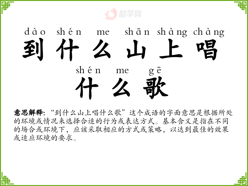 1.到什么山上唱什么歌的拼音是什么?到什么山上唱什么歌怎么读?