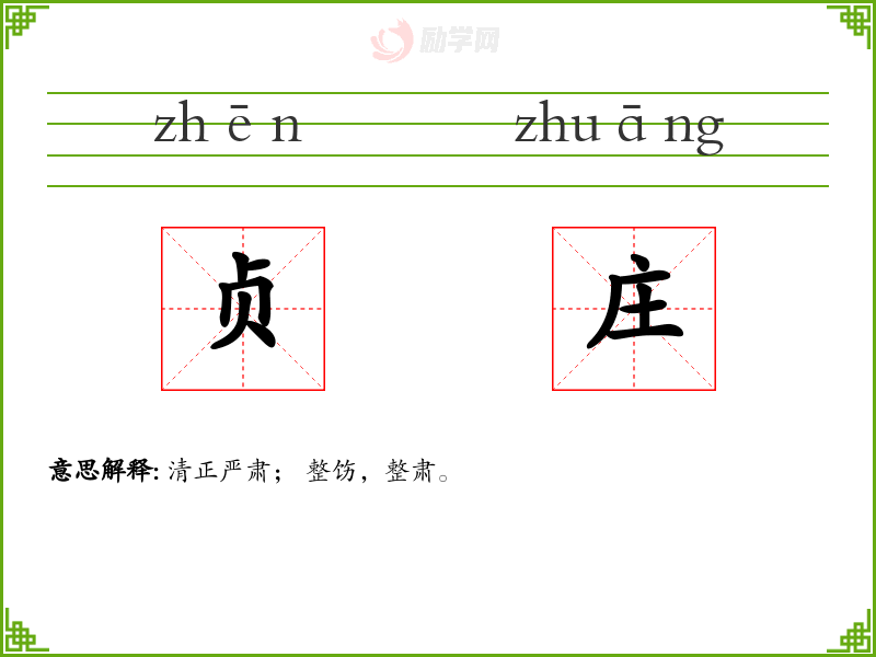 贞庄的意思是:清正严肃; 整饬,整肃。