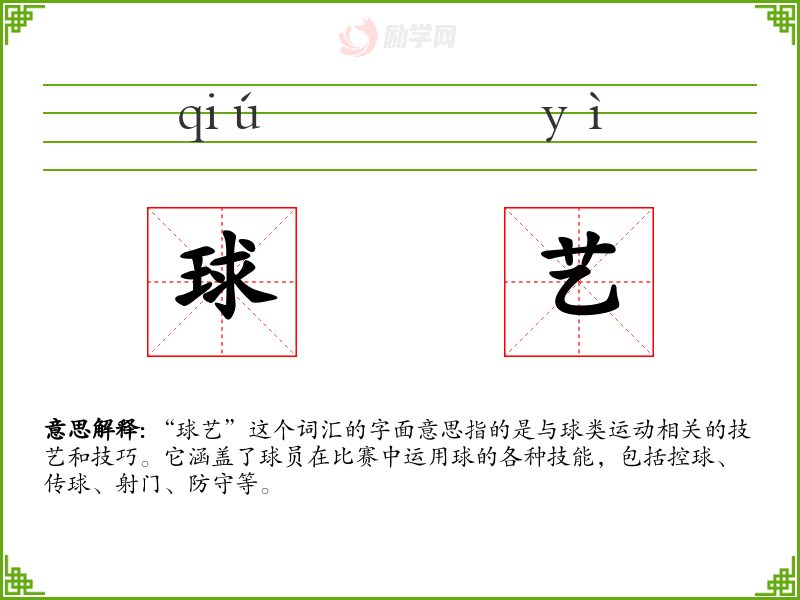 “球艺”这个词汇的字面意思指的是与球类**相关的技艺和技巧。它涵盖了球员在比赛中运用球的各种技能,包括控球、传球、射门、防守等。