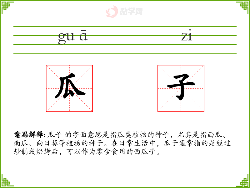 1.瓜子的拼音是什么?瓜子怎么读?