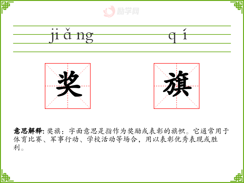 - 同义词:荣誉旗、胜利旗、表彰旗