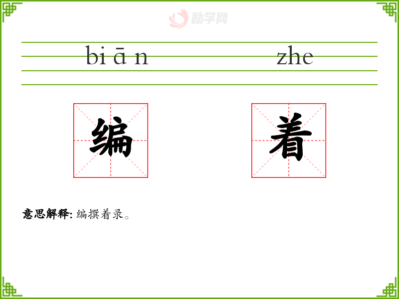 《说文》-编,次简也。 《声类》-以绳次物曰编。 《谷梁传·桓公元年》-春秋编年,四时具而后为年。 柳宗元《驳复仇议》-且请编之于令,永为国典。
