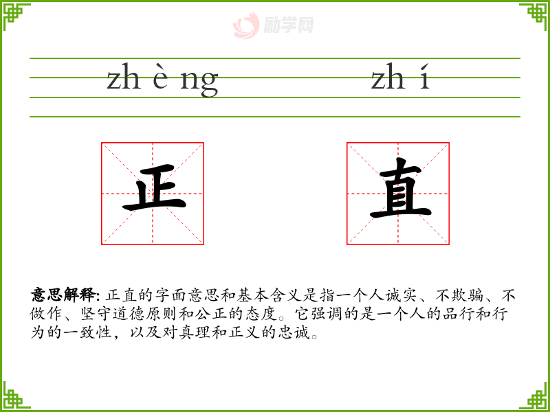 正直是一个在各种语境中都非常重要的词汇,它不仅是个人品德的体现,也是社会和谐与信任的基石。在我的语言学*和表达中,正直是一个我始终追求和尊重的品质。