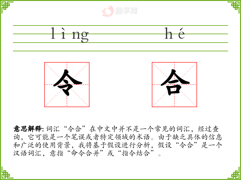 由于“令合”不是一个常见的词汇,对其的理解和应用可能需要特定的语境。在语言学习和表达中,了解特定领域术语的重要性不言而喻,它们往往是专业沟通的关键。
