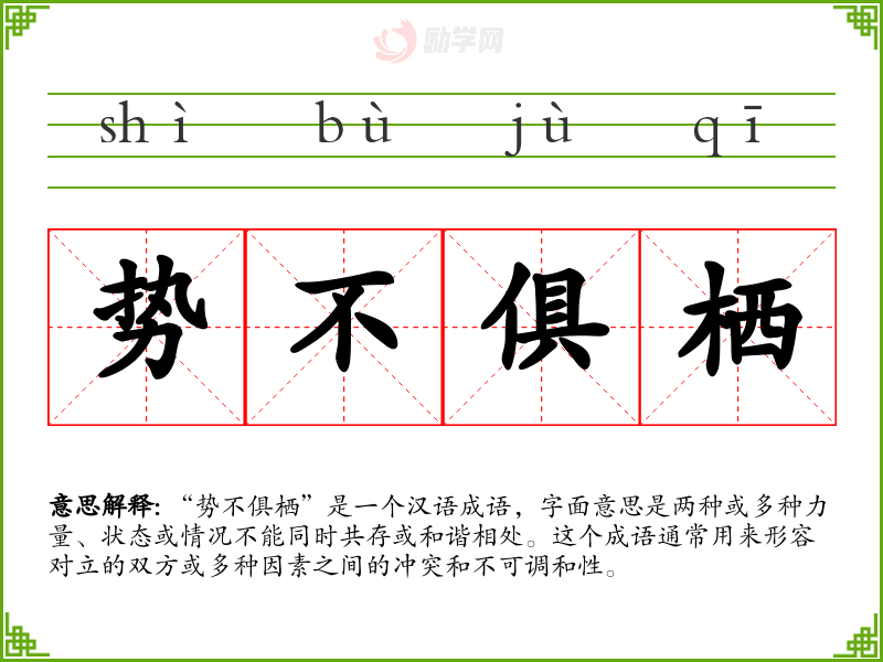 1.势不俱栖的拼音是什么?势不俱栖怎么读?