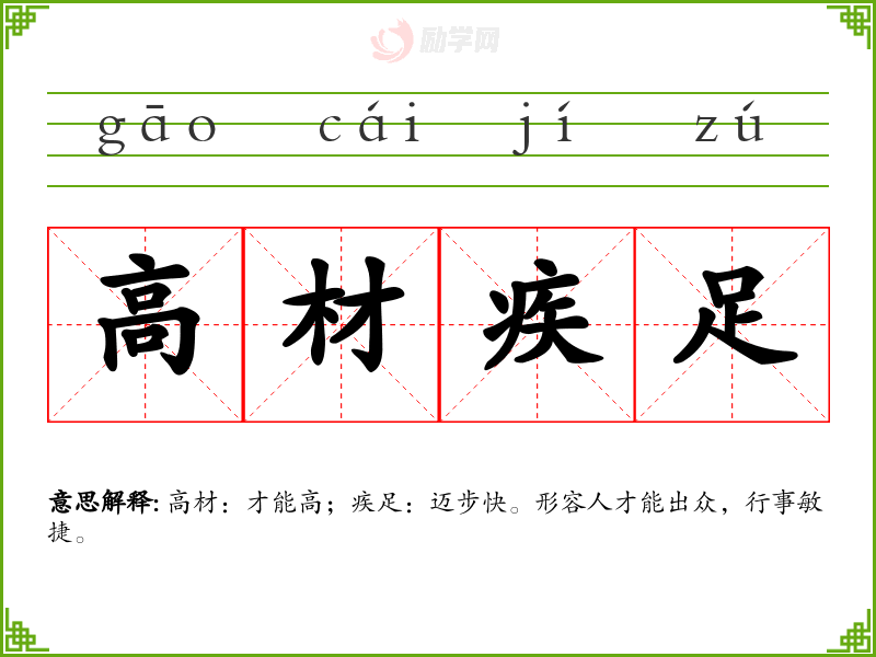 高材:才能高;疾足:迈步快。形容人才能出众,行事敏捷。