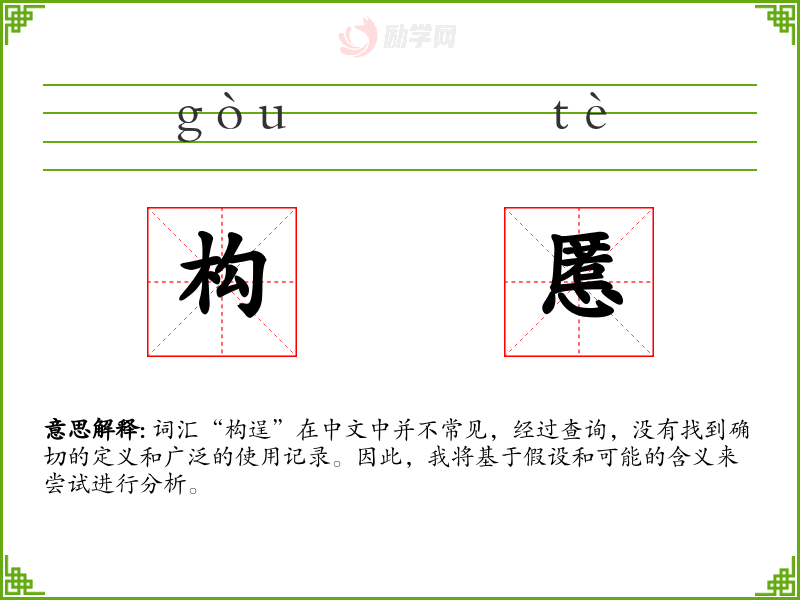 由于“构逞”不是一个标准词汇,我对该词汇的理解非常有限。在语言学习和表达中,了解和使用标准和常见的词汇更为重要。