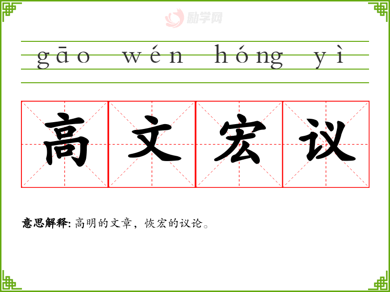 高文宏议的意思是:高明的文章,恢宏的议论。