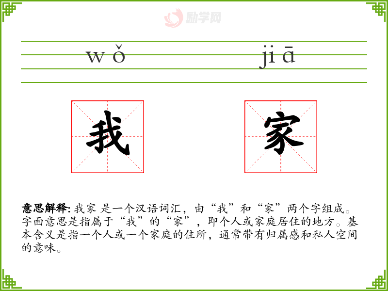 - 同义词:我家 的同义词包括“我的家”、“我家住所”、“我家宅”等,它们在语义上非常接近,但在语气和正式程度上可能有所不同。