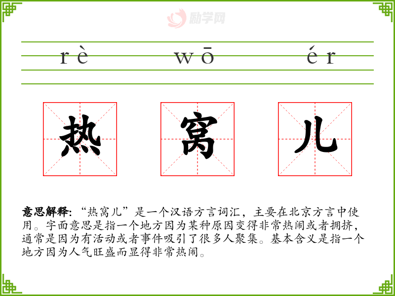 1.热窝儿的拼音是什么?热窝儿怎么读?