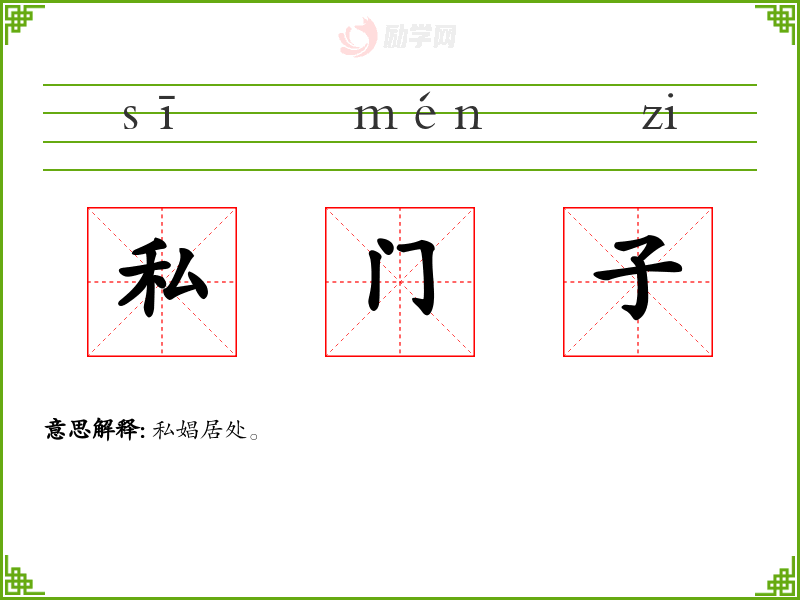 私门子的意思是:私娼居处。