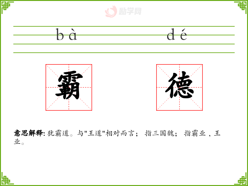 霸德的意思是:犹霸道。与"王道"相对而言; 指三国魏; 指霸业﹐王业。
