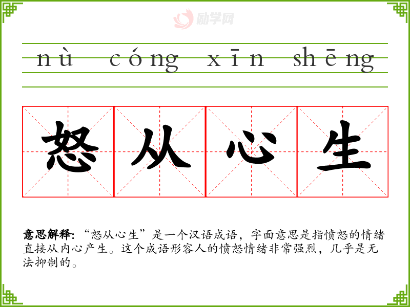 1.怒从心生的拼音是什么?怒从心生怎么读?