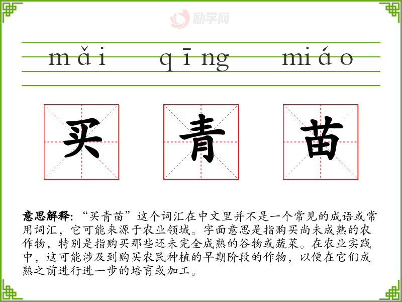 1.买青苗的拼音是什么?买青苗怎么读?